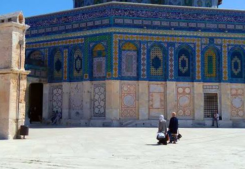 Ήταν ο τρίτος τόπος λατρείας που θέλαμε να επισκεφτούμε, αφού σε αυτή την πόλη διεκδικούν από ένα κομμάτι της, οι τρεις μονοθεϊστικές θρησκείες. Στην προσπάθειά μας να πλησιάσουμε. πέσαμε πάνω σε δύο εισόδους ελεγχόμενες από ισραηλινούς υπαλλήλους και στρατιώτες που μας διαβεβαίωναν ότι το τέμενος είναι κλειστό, ότι δεν είναι δυνατή η πρόσβασή μας, εκτός αν πληρώναμε είσοδο… Κάτι δεν πήγαινε καλά, αφού βάσει του τουριστικού οδηγού το τέμενος είναι ανοιχτό συγκεκριμένες ώρες και δεν ήμασταν εκτός χρόνου. Τους αγνοήσαμε και, ω, του θαύματος, πλησιάσαμε από ένα πλάγιο πέρασμα και ούτε κλειστό ήταν, ούτε έπρεπε κάτι να πληρώσουμε. Βεβαιωθήκαμε πλέον ότι στην πόλη αυτή παίζεται ένα συνεχές παιχνίδι ανταγωνισμού ακόμη και στα πιο καθημερινά και απλά πράγματα. Ήταν σαφές ότι ήθελαν να αποτρέψουν τη είσοδό μας. Γιατί; Έτσι!
